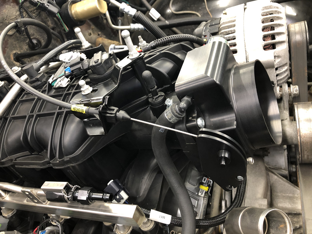 I didn't know that a pre-made bracket existed for cable throttle on a NBS intake. I made one using a stock 99-02 truck bracket, cut it up and used a chunk of angle steel to make a brace. Measured the distance between the cable rotor and the bracket on a stock intake and replicated that. Works well.