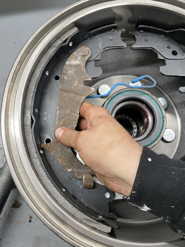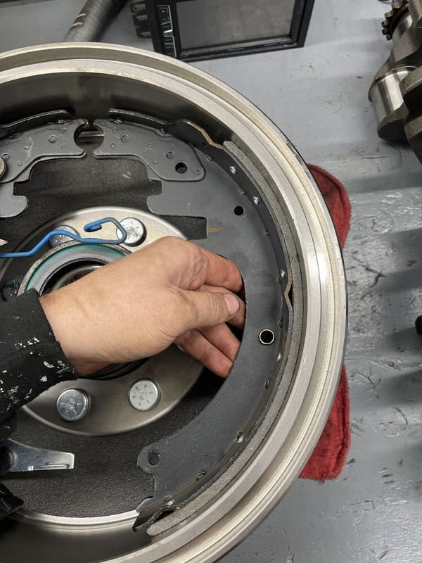 Went to adjust the rear shoes. I can tell the new drums are slightly out of round, as they drag slightly on the shoes on only about 1/2 of the drum. Both sides do this. However, at the adjustment sight windows at the bottom of the backing plates, the shoes have a small gap and don’t touch the drum. I could likely crank on the adjuster and force them to, but the drum would be locked up. It feels like the shoes touch the drum at the top before the bottom. The driver side is slightly better than the passenger side. Currently, I have it adjusted where there is some slight drag. After attempting to bleed the brakes, the front worked fine. I could not get consistent pressure to the rear, although the rear brakes did work really well once sporadically. I determined the proportioning valve was shot. Ordered a new proportioning valve and the bleed lock tool for it. Installed both of those and had better results, but still inadequate pressure in the rear. Warrantied out the brand new master cylinder for another one and rebled the system. Now I have good pressure to the rear. However, the hose from the frame to the axle was machined incorrectly, and the hard line wouldn’t seat and kept leaking. This damaged the new passenger side hard line. I warranted out the hose and reflared the hard line and replaced the fitting. Went to install and the drivers side threads pulled right out without even tightening down, damaging the driver side hard line. Replaced the hose again, with a different brand, and reflared the other hard line and replaced that fitting. Installed the new line and rebled the system again. Removed all the air and the pedal feels good. However, if I have the pedal pressed I can still turn the rear drums by hand. They definitely drag more than what my adjustment was, but they definitely don’t work. Front seems to lock up solid and work great. For an extra brain scratcher, if I manually pull the parking brake cables by hand, both rear brakes will work perfectly via the parking brake. Not sure what the issue is, but I think I’ll have to dive back inside one of these upcoming weekends. At least I had some help, lol. ![]() ![]() This was…interesting. ![]() New proportioning valve installed ![]() New wheels mounted in the front! ![]()