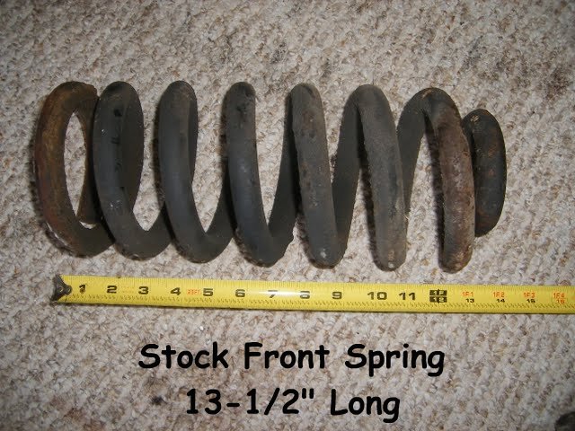 so I got to looking and figured it was time to drop the truck a bit. This is what I started with Wheel well height from the ground (32.5") Hub to wheel well height (19.5") Getting it apart was pretty straight forward The Stock spring (13.5") Slice & Dice Time The aftermath... Cut spring size (12.5") Wheel well to ground (30") Hub to wheel well (17") As she sits now Before drop Wheel well to ground - 32.5" Hub to wheel well - 19.5" Stock Spring size - 13.5" Tire and wheel info - P275/60R15 After Drop Wheel well to ground - 30" Hub to wheel well - 17" Cut spring size - 12.5" Tire and wheel info - P275/60R15 And before anyone says it, Yes the back is next, I will be picking up my U-bolts next week & adding a 2" drop block to the rear. I know I should have replaced all my ball-joints & tie-rod ends while it was apart, but this was just a quick afternoon project & everything looked "OK" not perfect but ok enough to just put back together