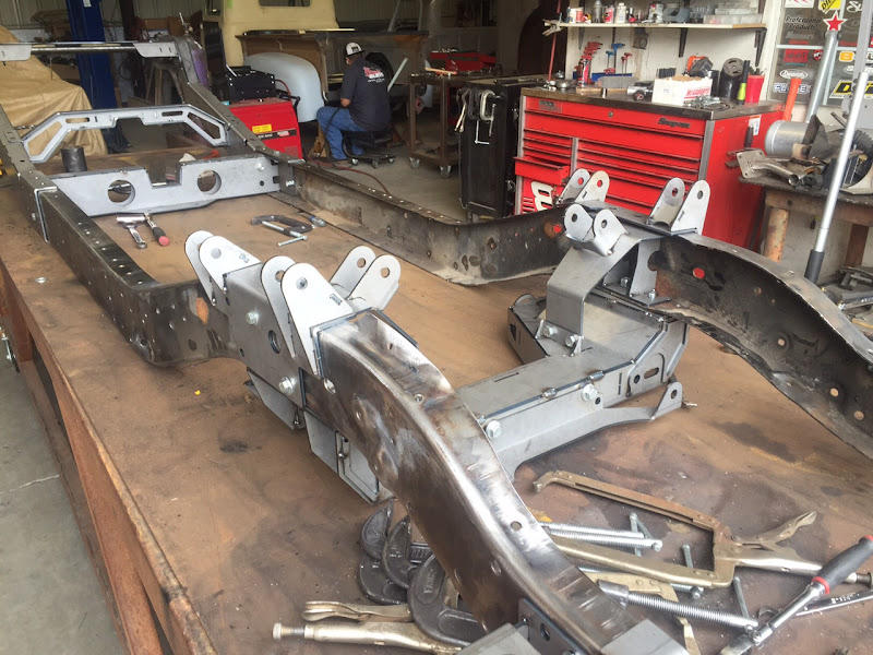 Front: $2,500 Includes main crossmember, control arms, rack-n-pinion hardware, trans crossmember, shocks & steering linkage. Rear: $2,500 Include complete back half (can be used to shorten a long bed frame), carrier bearing crossmember, frame crossmembers, rear cab mounts & shocks. Right now, it's setup as a triangulated 4-link, but a parallel will be available as well, with a watts link. Last edited by Pro Performance; 10-19-2015 at 08:31 PM. |