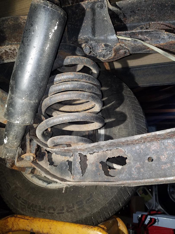 I for sure need new trailing arms. What should I do? One solution I came across is buying the coilover trailing arm kit from CPP as it doesn't use the rusted out frame spring mount. It's very expensive though. Uggg, I just want to drive my beloved C10!