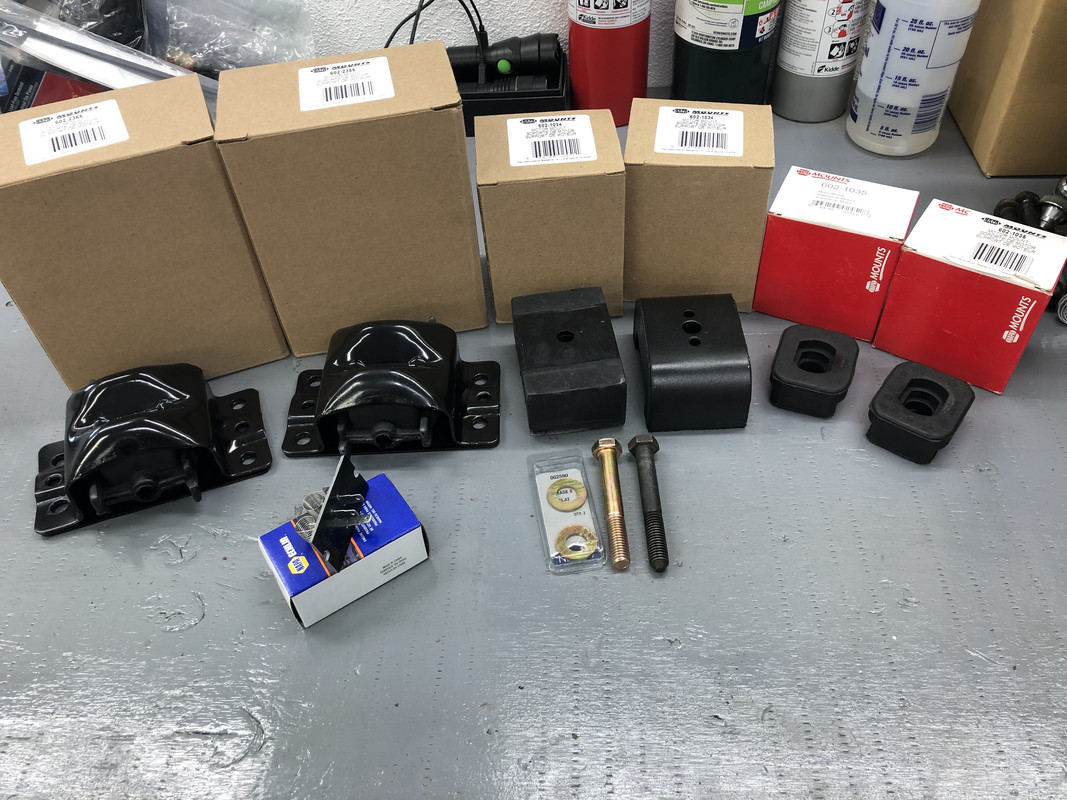 I picked up a new pair of motor mounts, upper and lower transmission mounts, heater motor resistor, and a new bolt and washers that were missing from the transmission mount. Napa sold me one automatic mount on accident, but quickly swapped it out for the correct one.