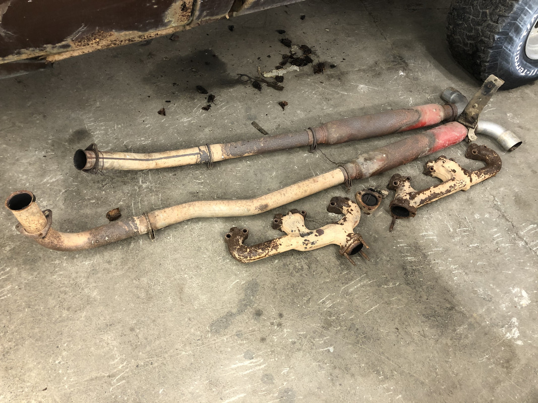 This is as far as I was able to get this weekend. Started stripping the old engine down to get it ready to pull. ![]() This is incredibly clean for the mileage this engine has! ![]() Got the exhaust, starter, and alternator all pulled. Someone installed this exhaust in the time it was away. Whoever thought it would be a good idea to make the turn downs point straight at the gas tanks was ![]() ![]() I’m just noting this so I remember to fix it in the future. I don’t think you’re supposed to be able to do this! ![]()