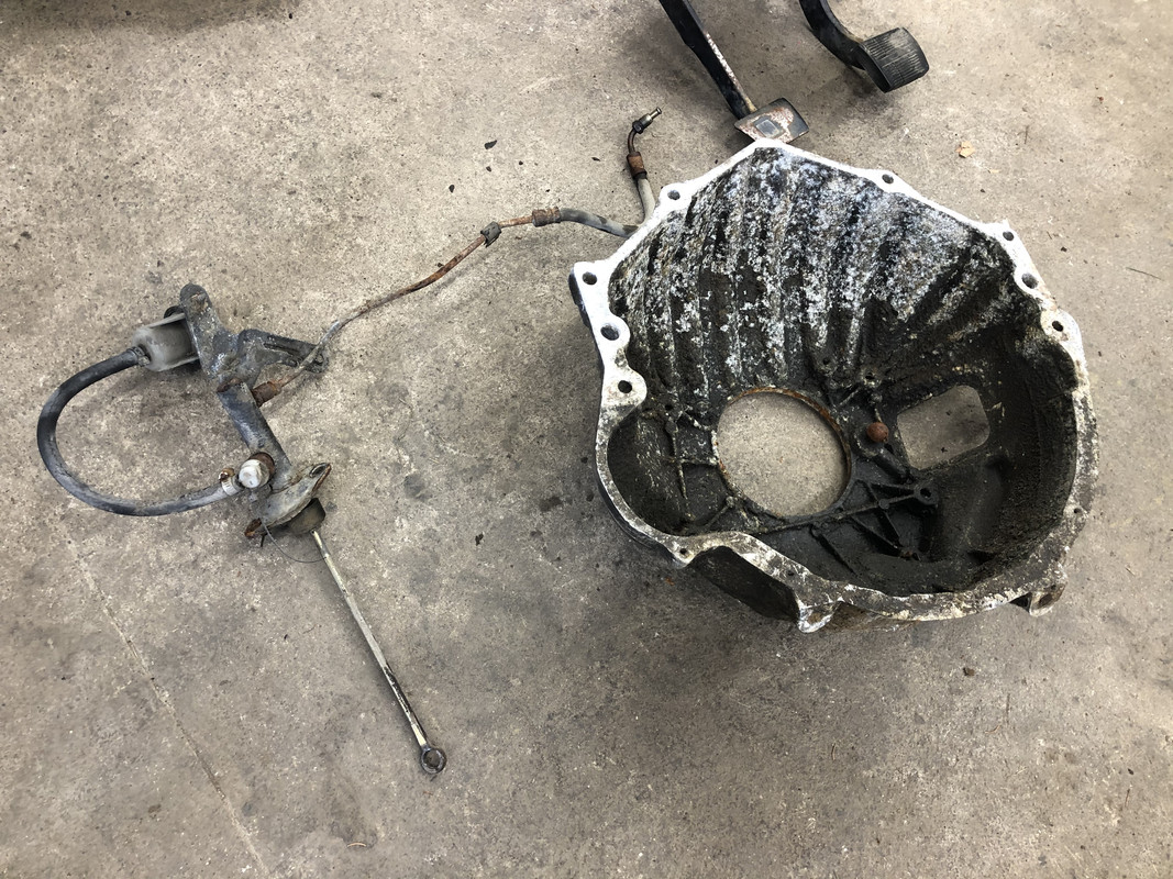 Last night was another ordering spree! I bought a RAM internal slave cylinder with remote bleeder, 36” -3AN braided line to run to the master cylinder, a Earl’s 3AN to 12mmx1.0 ISO adapter fitting for the master cylinder, a gasket and seal kit for both the SM465 and NP205, since it looks like both are covered in oil and grease. This morning I will also be ordering a clutch fork boot and tank pads from LMC!