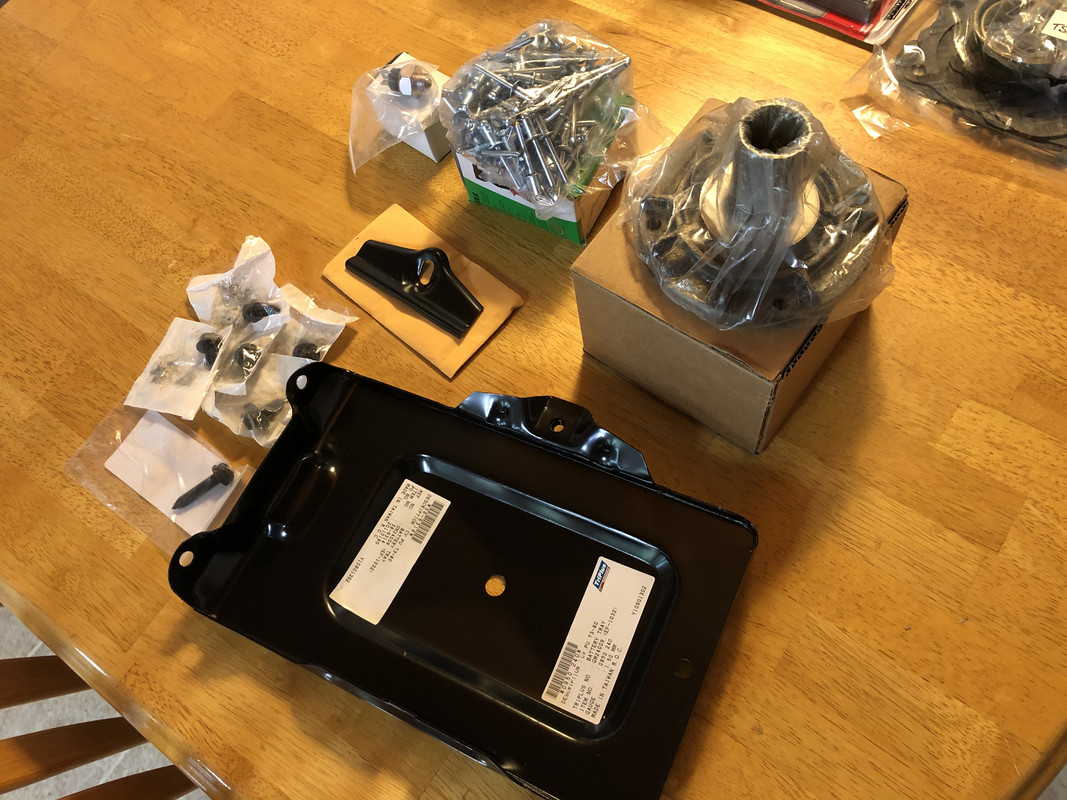 A few more parts trickled in today. I was hoping for at least the transmission and transfer case gasket kit, but I guess I’ll see them next week. The Ram throw out bearing, the Earl’s adapter, and the 36” braided line.