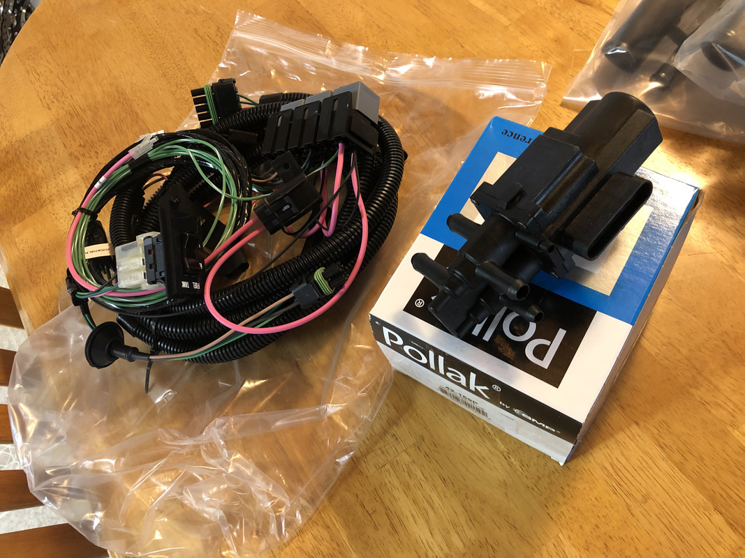 On to better news, more parts are showing up! I received my filler necks, gas caps, and hoses from LMC. ![]() I also picked up some EFI fuel hose, but will likely have to get more as I wasn't sure what size I needed. Also got some 5/16 to 3/8 adapters just in case. ![]() And finally, the harness and tank switching valve for running EFI and dual tanks. This is from Harnessworx/gmachinz and is incredible quality!