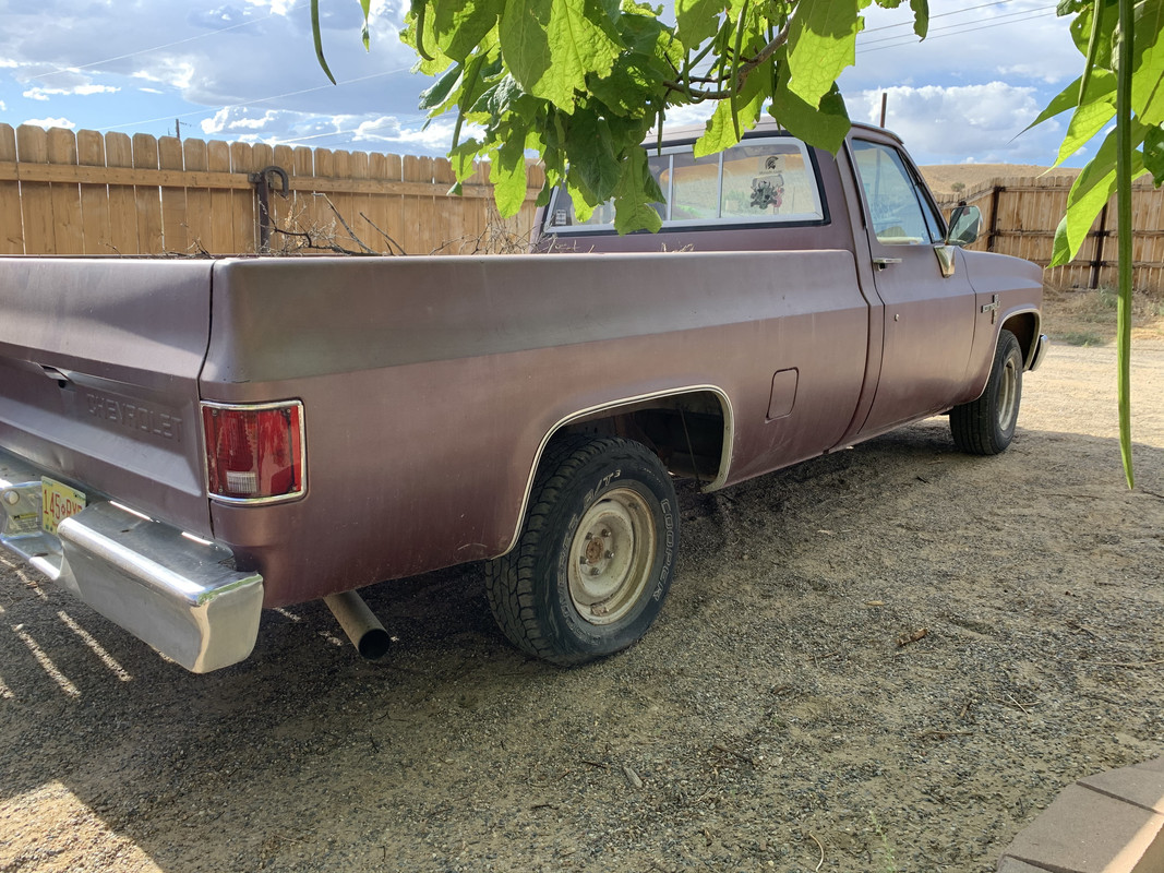 I've been dormant for a while on the truck forums, spend most of my time over on the 67-72 side, where I still have two projects that are currently on hold (and have been for quite some time.....life happens lol)...but over the weekend we picked up this '81 C10 for my 12 year old stepson to have as his first ride in about 3 years! I figured that would give us enough time to build it, with him learning about everything all along the way. He's just recently began to show interest in mechanics & cars in general, so it seemed like the perfect time to kick this off, and give him an end result that he can be proud to drive when he gets his license, all while learning the ins and outs of everything along the way. This particular truck comes to him as a hand me down from grandpa, and was the truck his uncle drove throughout high school (which probably makes you just as surprised as me as to how straight the body still is). His uncle didn't have any interest in keeping it, so it was passed down to him for this project!