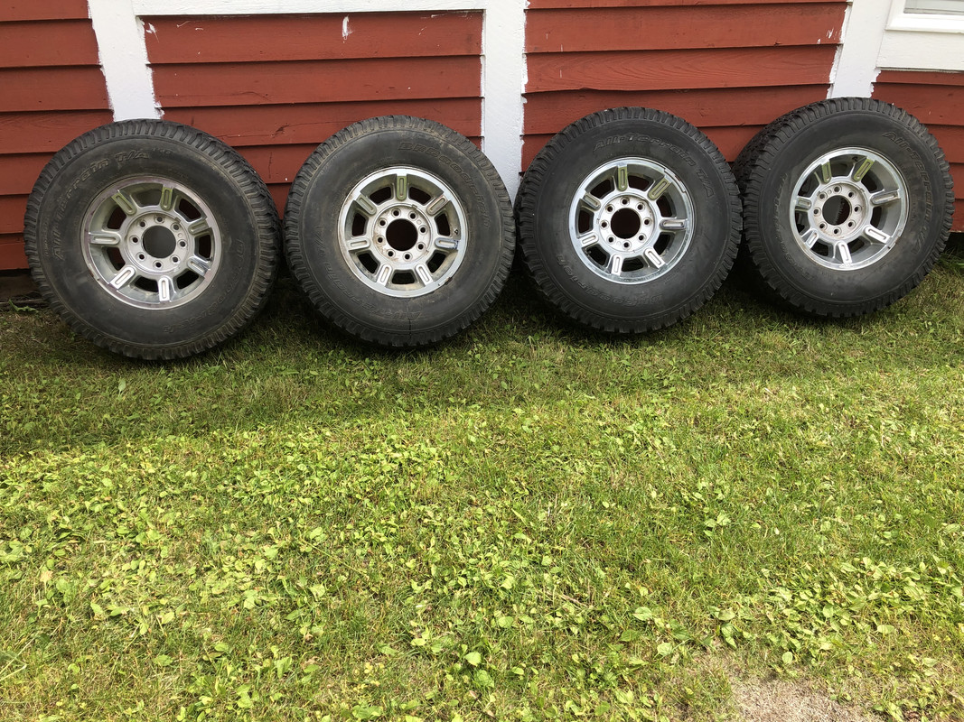 I picked these up yesterday for $150. Full set of H2 wheels on tires. The tires are pretty weather checked, but they hold air and the guy that gave me the truck wants the old wheels back.