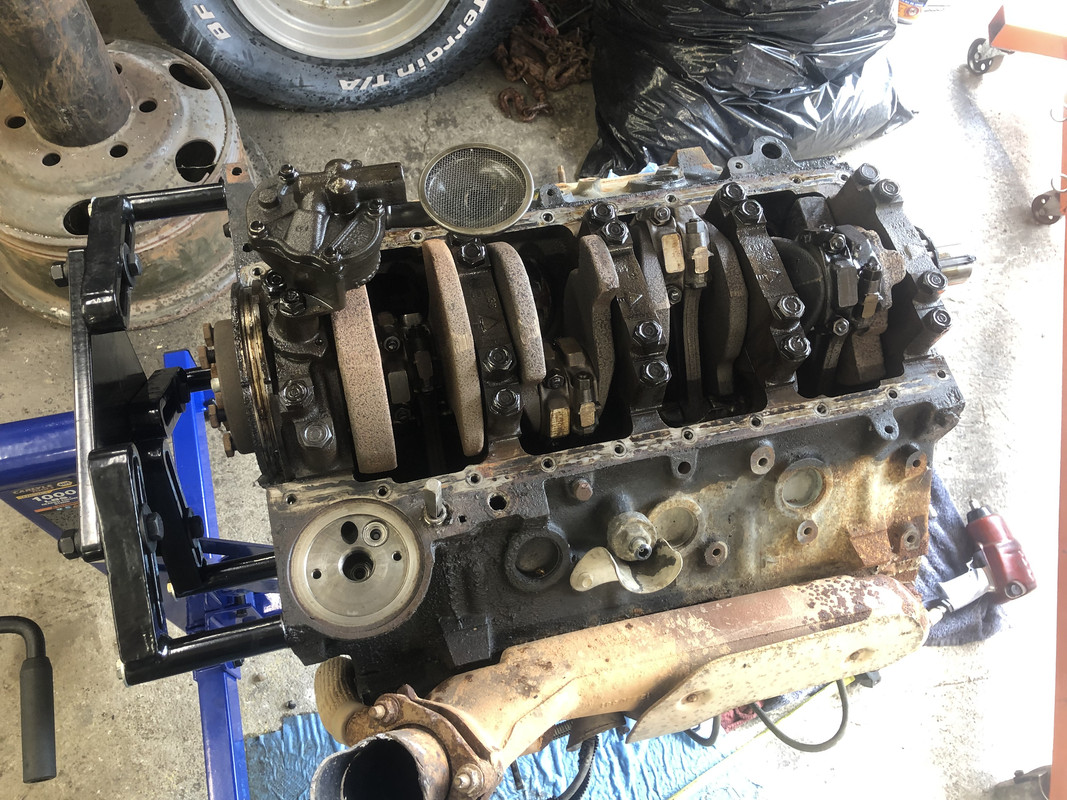 I got a chance to inspect the VIN today, and it looks like I have a 1997! I also threw the 454 up on the stand today, and again I can’t emphasize just how nice this crank is! Spins over a full iron BBC like it’s nothing! I pulled the water pump, balancer, timing cover, and oil pan to check out the crank.
