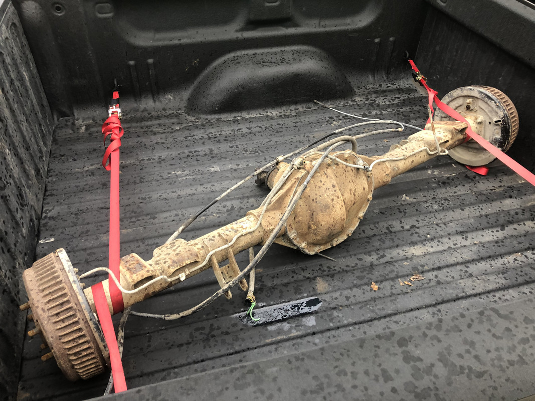 I made a huge score today! I had found a light duty (6 lug) 2WD 14 bolt rear axle locally, and had planned on pulling it this weekend. I figured I can get custom shafts made for it to convert it to the correct 5 lug. However, today, THIS popped up on Marketplace, and I couldn’t get down there fast enough! A REAL 454SS rear axle! Not only that, but the seller told me it was pulled (along with the engine and transmission) at 40k miles for a twin turbo 5.3L build! To top the deal off, he let it go for only $200!!