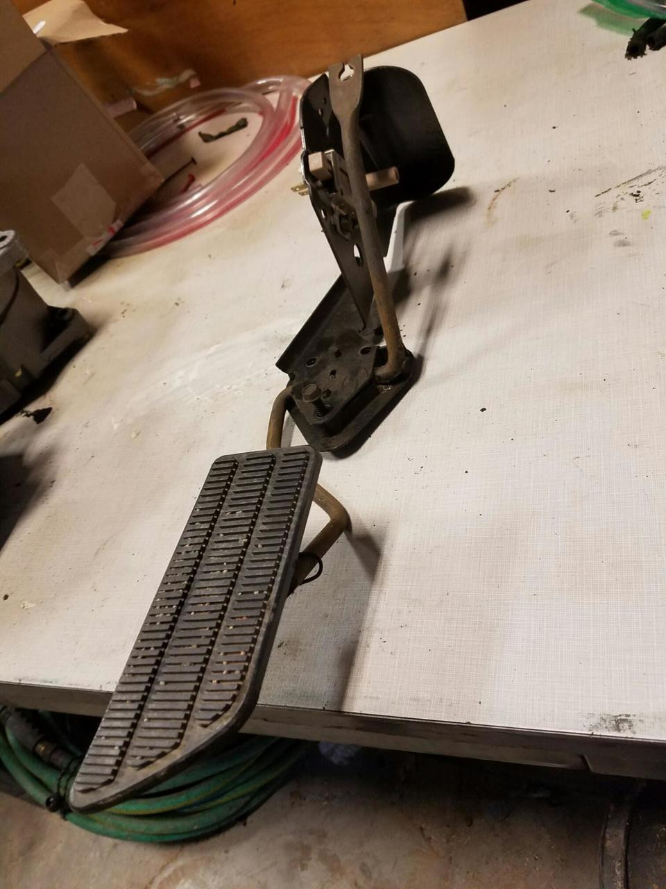 With a BBC installed, it seems like someone must have replaced the original gas pedal with one from another vehicle? Here's a square body truck gas pedal with a THM 400 kickdown switch. The switch is near the top of the picture. It's the tan parts.