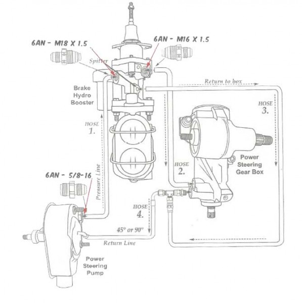 I am running a disc brake conversion front and back on a 70 C20 4x4. I am just getting into the hydroboost troubleshooting. My lines are layed out as per diagram shown, and I'm using a disc/disc master cylinder. What's happening is, power steering is working fine, air is bled, the brakes work but pedal goes to floor then pushes back at me, and when stepping on the pedal I feel the steering wheel move slightly. Also when engine is off pedal feels fine. And yes brakes are bled